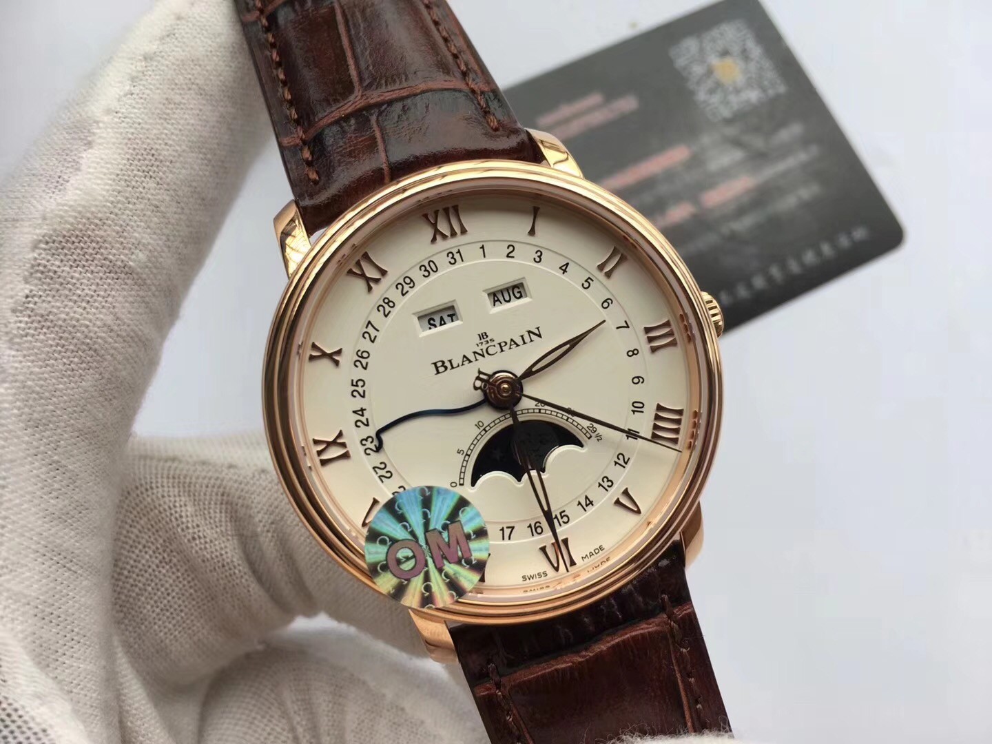 News Release: Major Breakthrough in the Counterfeit Watch Industry. OM Factory New Product Preview: Blancpain Villeret Classic Series 6654 with Moon Phase Display. This is the highest-end watch on the market. Developed over 20 months, this watch features a custom-made 6654 movement, featuring authentic date, day, month, and moon phase displays. Its functionality and appearance are identical to the original. 40mm diameter.