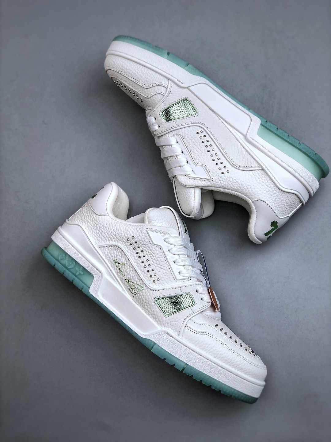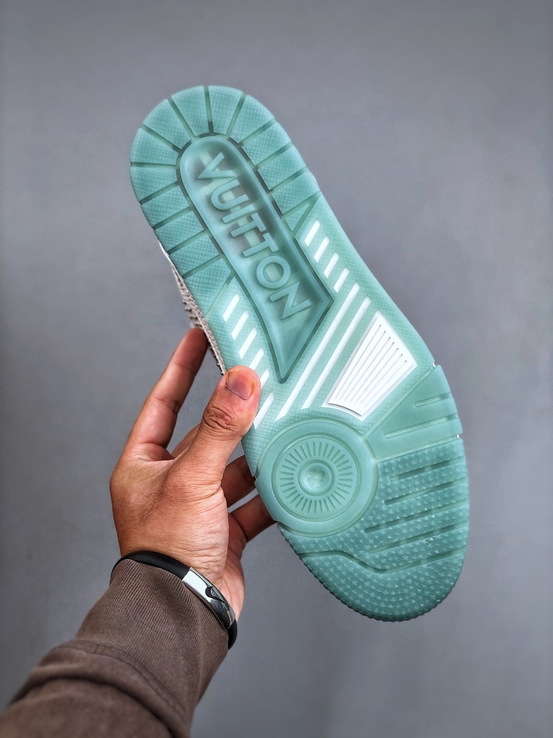 Tyler x Louis Vuitton LV Trainer collaboration low-top casual sneakers are available for overseas purchase through overseas shopping agents. They are of high-end quality and sold through the same channels. They are exclusively for original purchase and development. The complete set of packaging is perfect, the last shape is correct, the color is color-matched, the outsole is TPU, the texture is comparable to the original, and the details are consistent with the original Please pay attention to distinguishing the common material sizes on the market: 38-45