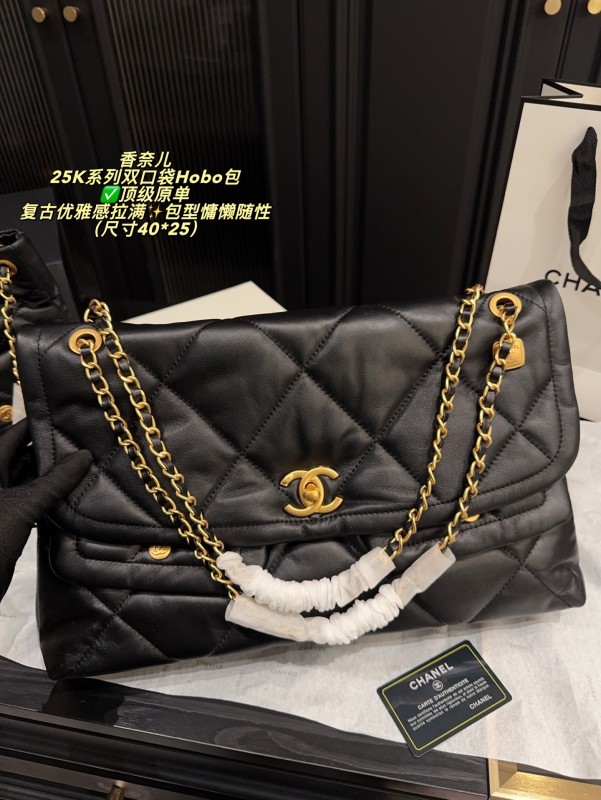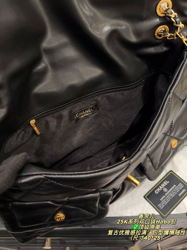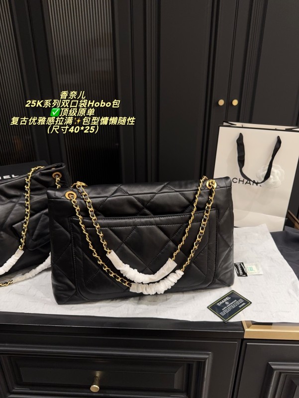 ✅ Top-quality original single made in China, size 40*25 chanel 25K series double pocket Hobo bag, black goatskin + classic diamond pattern, soft and delicate touch, paired with golden double C Logo and chain, retro and elegant to the fullest ✨. The bag is laid-back and casual, with a large capacity, making it suitable for both commuting and leisure. The front and rear pocket designs are both practical and fashionable. The chain can be carried by hand or on the shoulder, offering flexibility and versatility. Goatskin is of high quality, with a smooth touch and becomes more lustrous with use. It is a fashionable item that combines practicality and collectibility