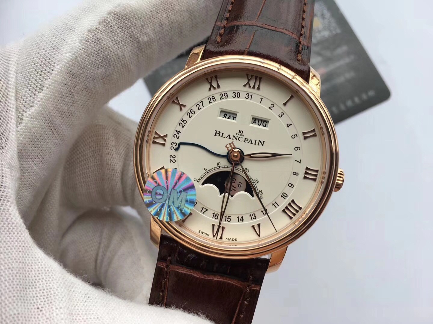 News Release: Major Breakthrough in the Counterfeit Watch Industry. OM Factory New Product Preview: Blancpain Villeret Classic Series 6654 with Moon Phase Display. This is the highest-end watch on the market. Developed over 20 months, this watch features a custom-made 6654 movement, featuring authentic date, day, month, and moon phase displays. Its functionality and appearance are identical to the original. 40mm diameter.
