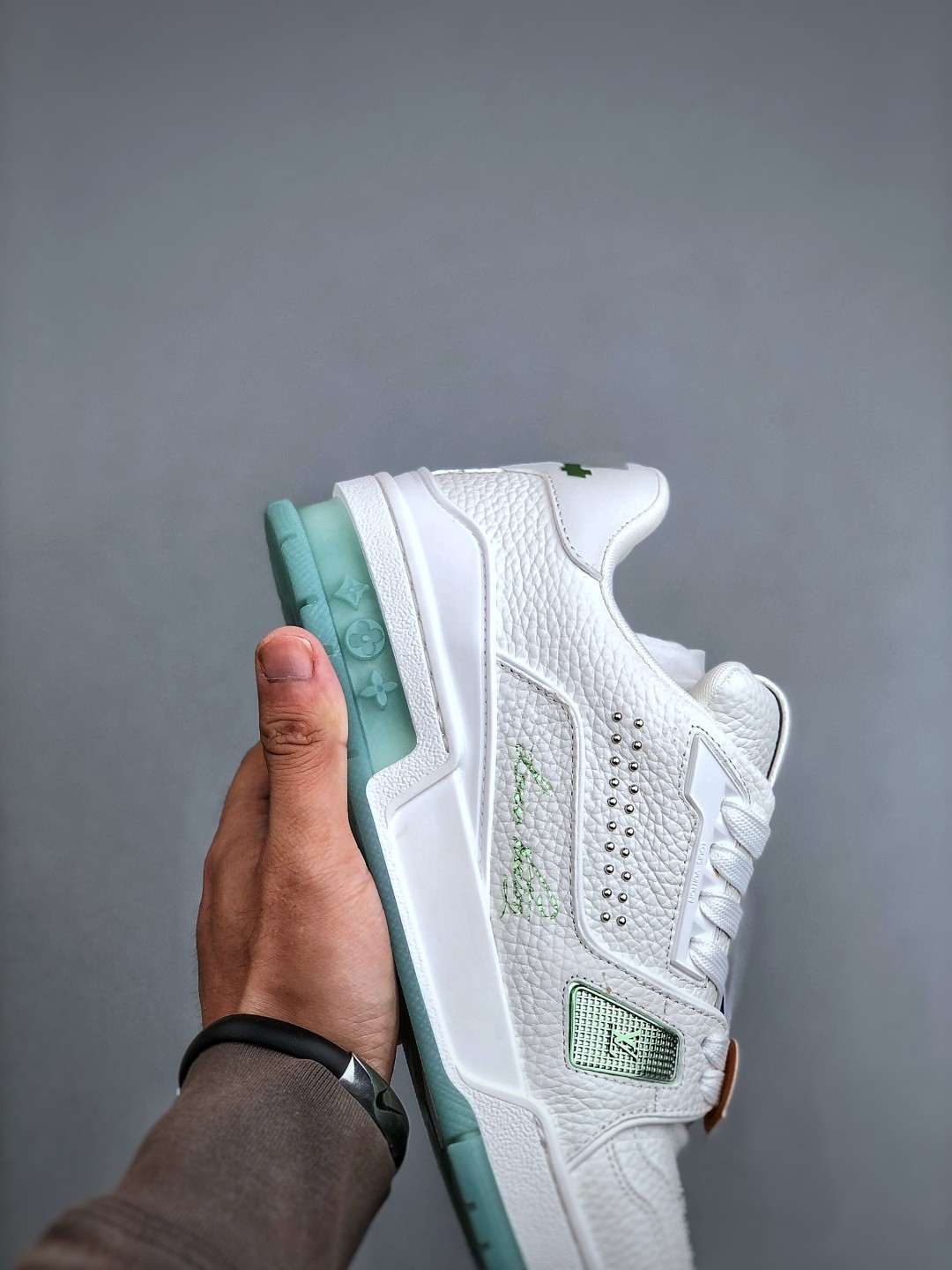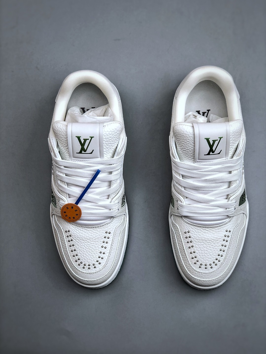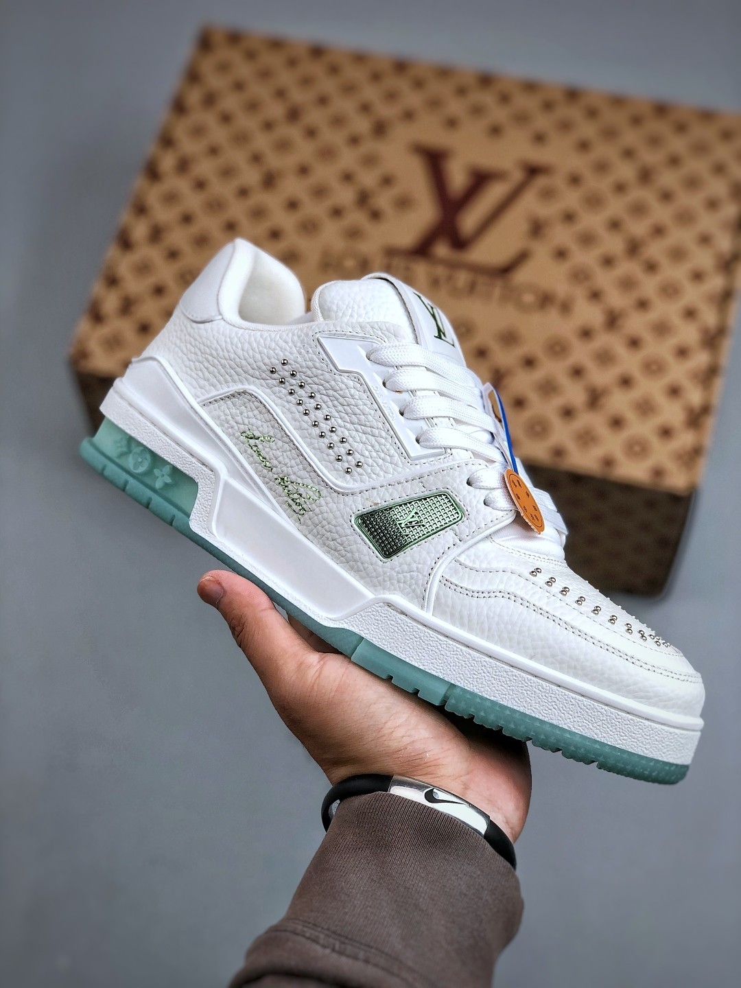Tyler x Louis Vuitton LV Trainer collaboration low-top casual sneakers are available for overseas purchase through overseas shopping agents. They are of high-end quality and sold through the same channels. They are exclusively for original purchase and development. The complete set of packaging is perfect, the last shape is correct, the color is color-matched, the outsole is TPU, the texture is comparable to the original, and the details are consistent with the original Please pay attention to distinguishing the common material sizes on the market: 38-45